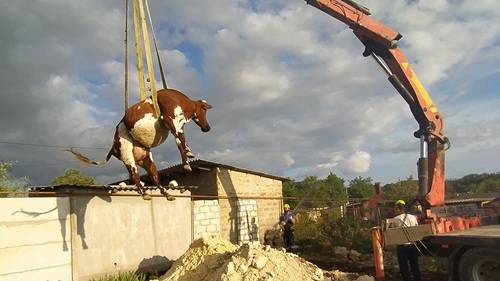 Так, например, вчера в 17:17 в чрезвычайное ведомство поступила информация о том, что в селе Ароматное (Бахчисарайский район) на территории строительного объекта в яму упала корова. Необходима помощь спасателей в извлечении животного из «ловушки».
