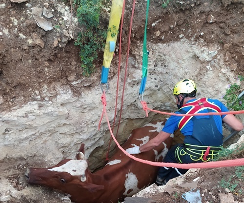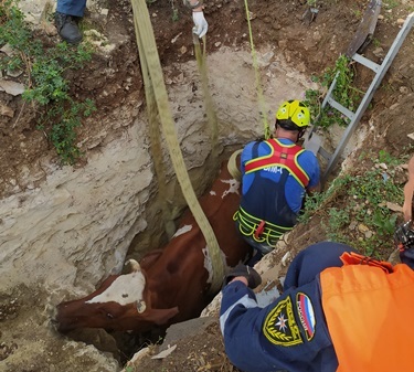 К месту происшествия направились сотрудники Бахчисарайского АСО «КРЫМ-СПАС». Прибыв по указанному адресу, спасатели выяснили, что животное упало в выгребную яму, глубиной около 4 метров. Чтобы извлечь корову, спасатели использовали шанцевый инструмент, альпинистское снаряжение и стропы, а также автокран (предоставленный хозяйкой коровы). Животное не пострадало.