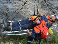Спасатели Ялтинского аварийно-спасательного отряда «КРЫМ-СПАС» провели учебную тренировку по эвакуации с высокой скалы пострадавшего со сломанной рукой.