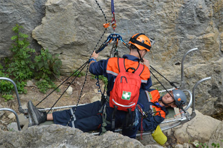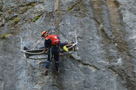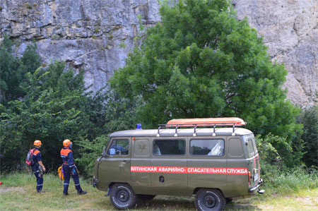 По тревоге была поднята оперативная группа спасателей Ялтинского отряда «КРЫМ-СПАС» в составе 8 человек. При помощи альпинистского снаряжения сотрудники «КРЫМ-СПАС» добрались до условного пострадавшего. Благодаря слаженным действиям спасателей мужчине была оказана доврачебная медицинская помощь. Посредством полиспаста (специального грузоподъемного устройства) горноспасатели отработали как подъем пострадавшего вверх на вершину скалы, так и его спуск вниз.