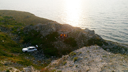 Вчера, 27.07, в 18:00 оперативному дежурному «КРЫМ-СПАС» поступило сообщение о том, в районе Джангульского оползневого побережья, между балкой Малый Костел и балкой Очеретай автомобиль ВАЗ 21014 упал с обрыва. В автомобиле находится 4 человека. Требуется помощь спасателей.