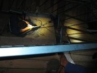 Пришлось выбивать стену снизу для доступа к пострадавшей.