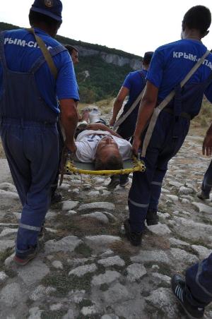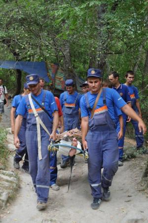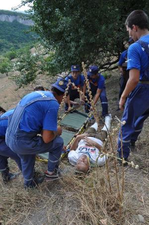 К месту происшествия выехала спасательная группа в количестве 10 человек. По прибытию было установлено, что пострадавший упал со скалы в районе караимских кенасс с высоты 15 метров. Травмировал правую лодыжку, правую ключицу, возможно сотрясение головного мозга.