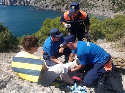 На место происшествия выехала группа спасателей Судакского АСО в составе 5 человек. По обнаружению пострадавшей спасателями была оказана первая помощь – наложена шина. Посредствам специальных носилок жительница г. Санкт-Петербург была доставлена к автомобилю скорой помощи.