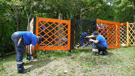 Силами отряда спасатели тщательно очистили памятник, обновили надпись на мемориальной плите, расчистили место от зарослей и покрасили ограждение в цвета георгиевской ленты.