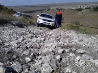 Спасатели Белогорского отряда «КРЫМ-СПАС» извлекли автомобиль с крутого склона горной дороги