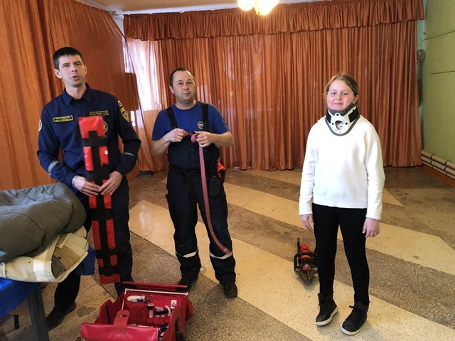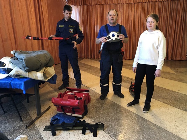 Кроме того, большое внимание было уделено правилам оказания первой помощи пострадавшему. Спасатели продемонстрировали, как правильно делать перевязку, проводить иммобилизацию поврежденных конечностей, накладывать на шейный отдел воротник Шанца и другое.