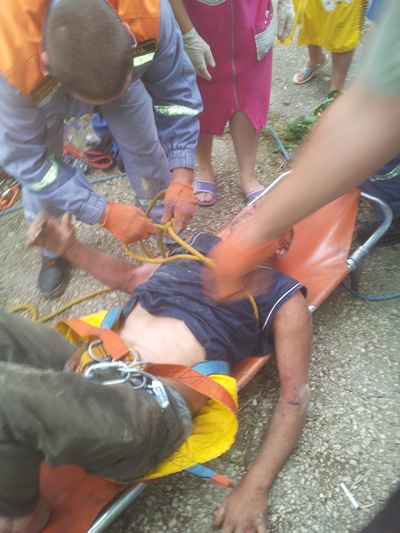 К месту происшествия немедленно выехала дежурная смена в составе 5 человек . По прибытии, спасатели обнаружили пострадавшего в колодце , на глубине 8 м и приступили к работам . С целью вентиляции в колодец был опущен шланг с подачей медицинского кислорода, а затем при помощи альпинистского снаряжения мужчину – местного жителя, извлекли на поверхность. Пострадавший, в сильном алкогольном опьянении передан врачам скорой помощи больницы с.Почтовое с предварительным диагнозом - закрытая черепно- мозговая травма.
