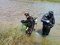 С целью оказания помощи следственным органам был осуществлен выезд водолазной группы из числа спасателей для проведения работ на дне, связанных с поиском вещественных доказательств по уголовному делу. Их местоположение в озере не было известно. В результате водолазы обследовали почти 100 кв.м дна водохранилища . Работать пришлось что называется «наощупь» - при нулевой видимости, в слое ила, толщиной около 70 см . Тем не менее, в результате проведенной операции , была обнаружена и поднята со дна сумка с документами пострадавших и другими вещественными доказательствами по уголовному делу. Все «вещдоки» переданы сотрудникам полиции.