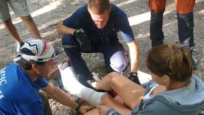 По прибытии, к месту происшествия, поднявшись по крутому склону к пострадавшей, спасатели оказали ей первую помощь, наложив на травмированную ногу шину. При помощи специальных носилок спустили пострадавшую к автомобилю скорой медицинской помощи.