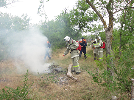 Так, во взаимодействии с работниками Государственного комитета по лесному и охотничьему хозяйству 114 спасателей всех отрядов «КРЫМ-СПАС» в зонах своей ответственности отрабатывали методы локализации и ликвидации возгораний в горнолесной и лесостепной зонах с использованием недавно поступивших на вооружение ранцевых огнетушителей, а также средств первичного пожаротушения. В ходе тренировки спасатели успешно потушили множество условных очагов возгорания.