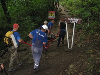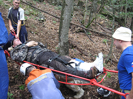 В 14:30 спасателями был найден пострадавший мужчина, житель г. Симферополь 1962 г.р., с травмой левой ноги. Спасатели оказали ему первую помощь – на травмированную конечность наложили шину. Посредством специальных носилок спасатели транспортировали пострадавшего туристка к автомобилю скорой медицинской помощи для дальнейшей госпитализации.