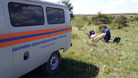 Для оказания помощи в район поисковых работ выехала группа спасателей Симферопольского аварийно-спасательного отряда «КРЫМ-СПАС» в составе 3-х человек и 1 ед. техники повышенной проходимости. Спасатели оперативно обнаружили пострадавшую и оказали ей первую помощь – на травмированную ногу наложили шину Крамера. Посредством специальных носилок спасатели эвакуировали пострадавшую к аварийно-спасательному автомобилю и транспортировали ее в с. Перевальное, где передали женщину работникам скорой медицинской помощи.